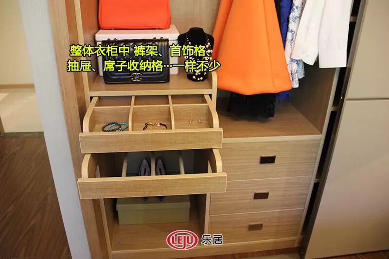 整體衣柜中,細節之處可見一斑:褲架、首飾格、抽屜、席子收納格···一樣不少,滿足男女主人的多種需求。