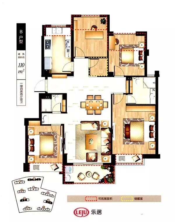 5,110㎡的四房戶型,更大開間,更多驚艷