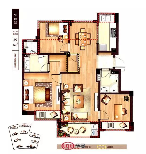 4,最霸氣的戶型:89㎡,三房兩衛一儲