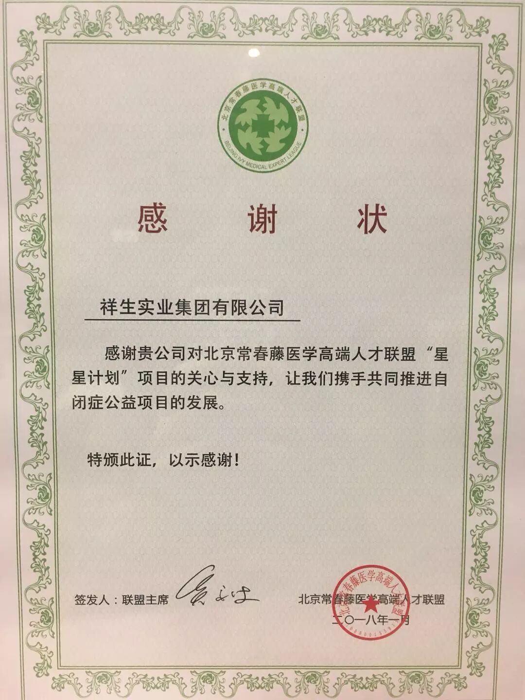 助力“星星計劃”點亮孩子未來 “常春藤星星計劃”由各類自閉癥相關專業人士自發組成,致力于為自閉癥兒童及家庭提供精準的治療管理及社會支持,致力于構建自閉癥多學科診療、康復、教育、社會支持相結合的醫教結合模式,為自閉癥兒童及家庭提供精準的分級、分層、分階段治療管理及社會支持。 作為常春藤愛心支持企業,祥生一直以來都致力于關愛自閉癥兒童,在多個層面為自閉癥兒童提供力所能及的幫助。在此次答謝會上,祥生便為“常春藤星星計劃”捐款助力,為“星星孩子”點亮未來貢獻自己的力量。 祥生公益一直在路上            落其實者思其樹,飲其流者懷其源。作為浙商代表企業之一,自成立以來,祥生集團在陳國祥董事長的帶領下,將慈善公益融入到公司發展的全過程中,社會公益、希望工程、災后募捐……各方各面都能看到祥生的身影。默默堅守慈善公益事業二十余年來,祥生一直都牢記并承擔起自己應有的社會責任,以實際行動回饋社會,累計的捐贈善款已超過億元。 不僅如此,在2017年的“中華慈善日”祥生更是認捐1億元金額,成立了祥生圓夢公益基金,并且每年捐贈5%(即500萬元)的年度增值金用于開展相關的幫扶關愛項目。 一路向前,不忘初心。近年來,祥生不斷快速向前發展,不僅實現了年銷售業績的“三連跳”,更是在2018年吹響了千億征程的號角,公司規模日益壯大。在快速向前發展的同時,祥生依舊牢記自己的使命和責任,為更快更好的推進慈善公益事業助力,將祥生的愛帶到更多需要的地方。