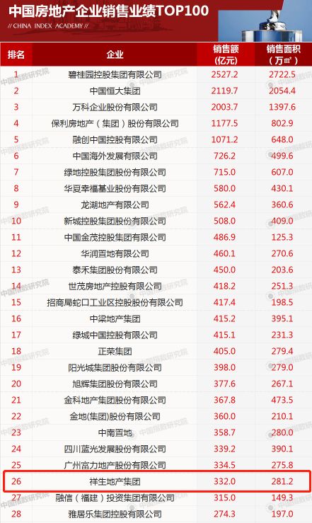 不僅如此,在4月底中國指數研究院發布的1-4月房企銷售金額排行榜中,祥生地產以332億元的銷售額位列第26名。
